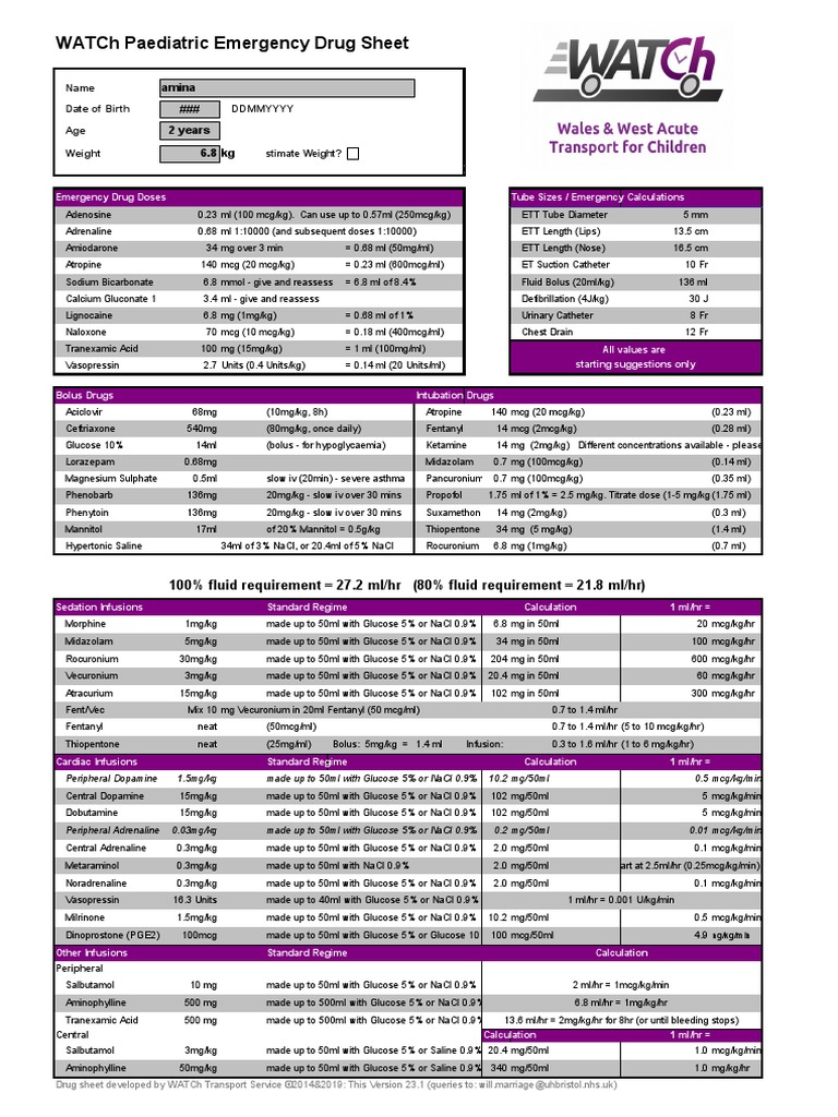 Watch Paediatric Emergency Drug Sheet Amina 2 Years 6.8 KG PDF