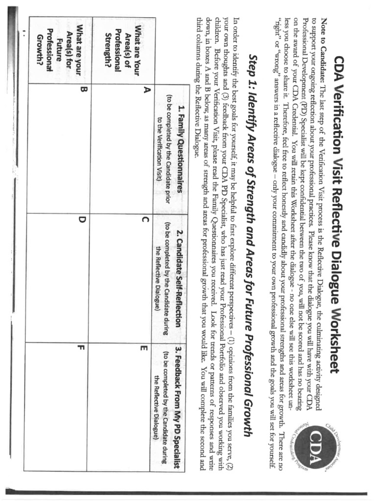 Cda Verification Visit Reflective Dialogue Worksheet Printable