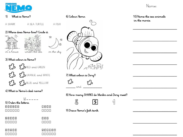Finding Nemo Worksheet PDF