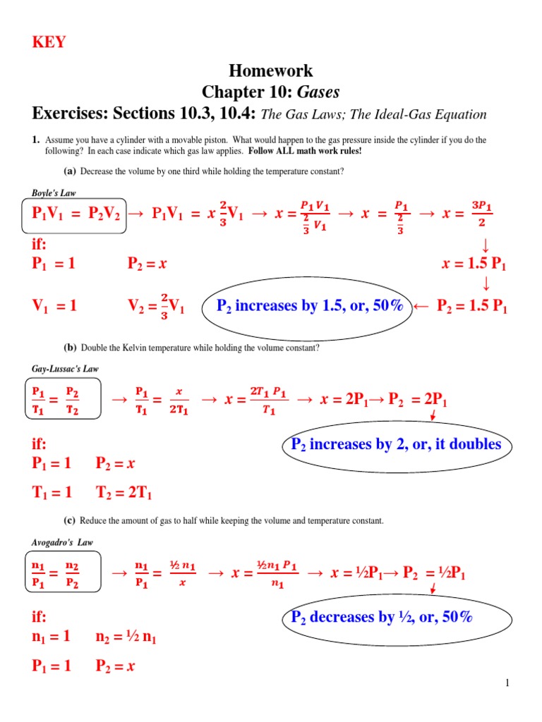 Exercises Sections 10.3, 10.4 The Gas Laws; The IdealGas Equation