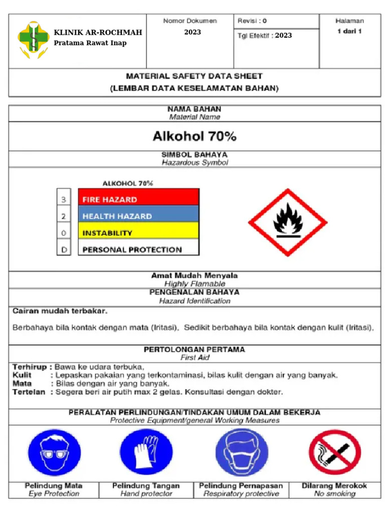 MSDS Alkohol 70 Ethanol Toxicity