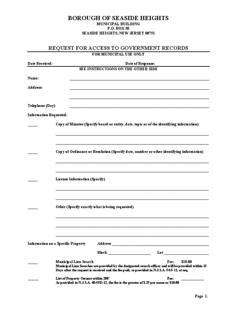 Seaside Heights OPRA Request Form Virtue Government