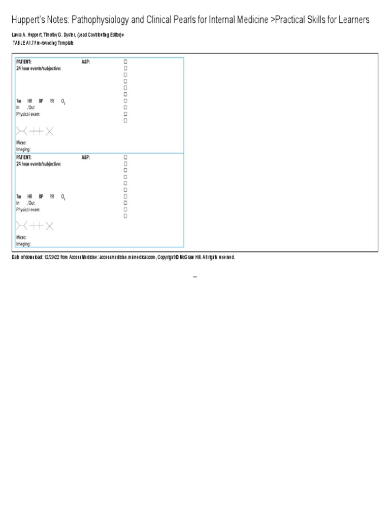 Pre Rounding Template Internal Medicine / Pediatrics Etsy