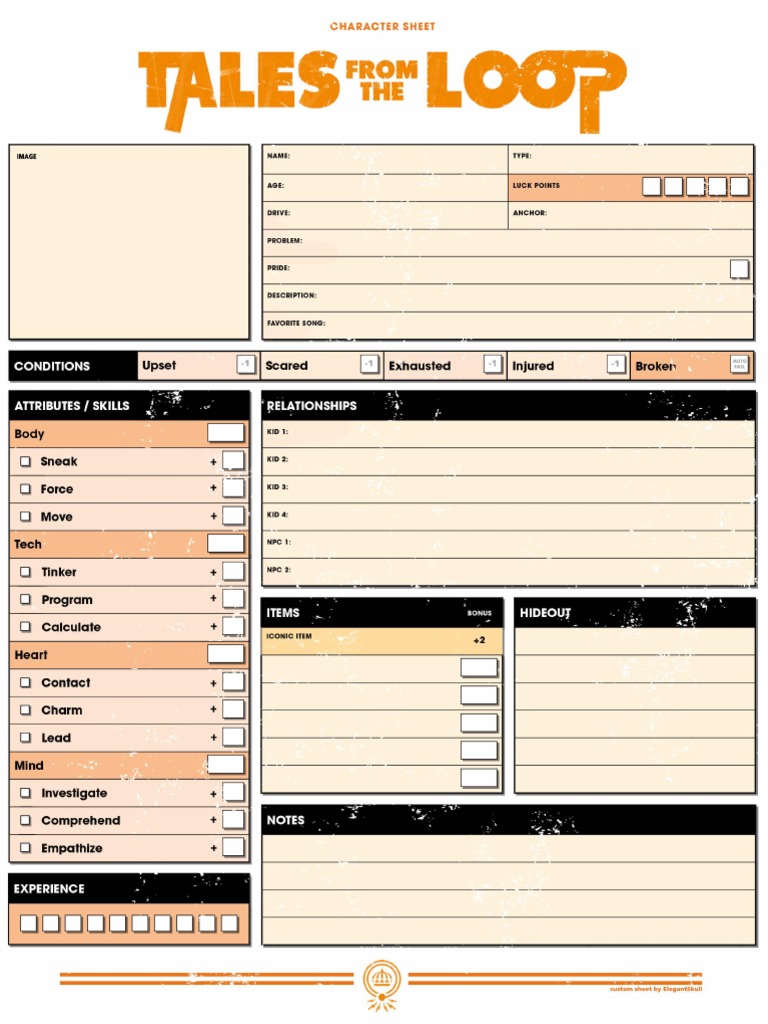 Tales from the Loop character sheet PDF FREE Character sheet, Tales